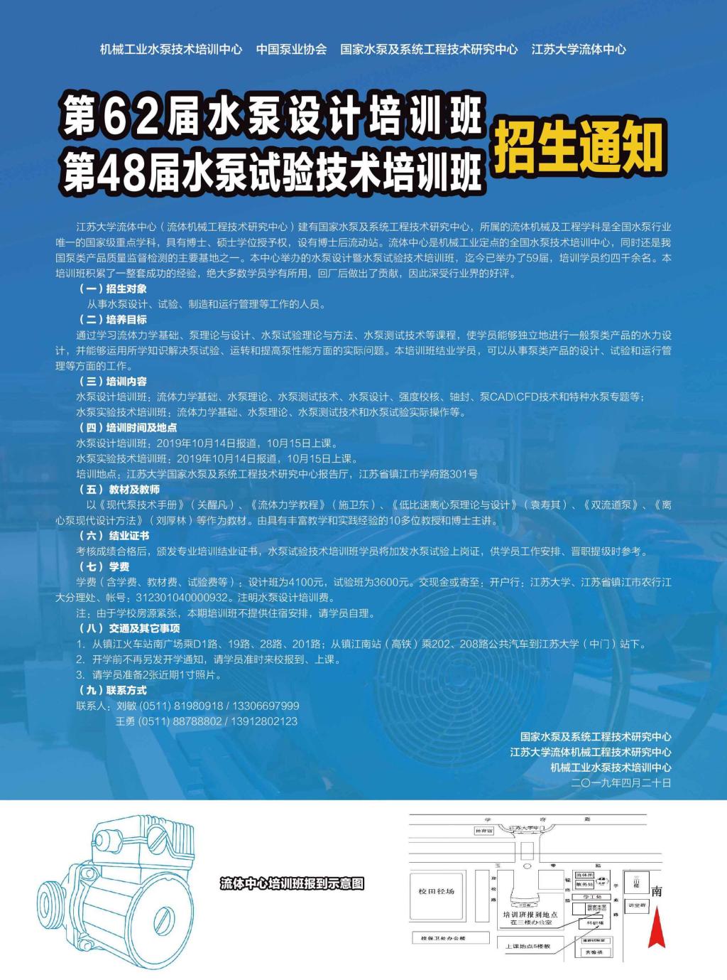 第62届水泵设计培训班、第48届水泵试验技术培训班招生通知