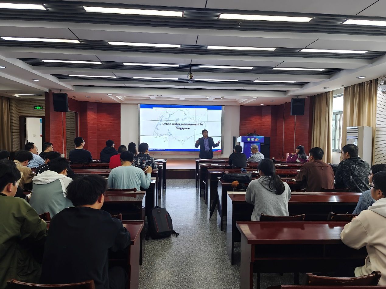 Recently, at the invitation of Professor Wang Xikun, Professor Tan Soon Keat from Nanyang Technological University visited the Fluid Center for exchange and delivered an academic lecture titled "Urban Water Management in Singapore" to faculty and students. He detailed the management knowledge of urban stormwater discharge, water collection, and wastewater treatment. He mentioned that due to Singapore's unique geographic location, its natural water sources are very limited, necessitating more human intervention in water collection and treatment. This has led to related measures by the Singapore government, such as preserving two-thirds of Singapore's land resources undeveloped as a reserve for future development, and setting up 17 water storage facilities in different regions to regulate water supply demands during drought and flood seasons.