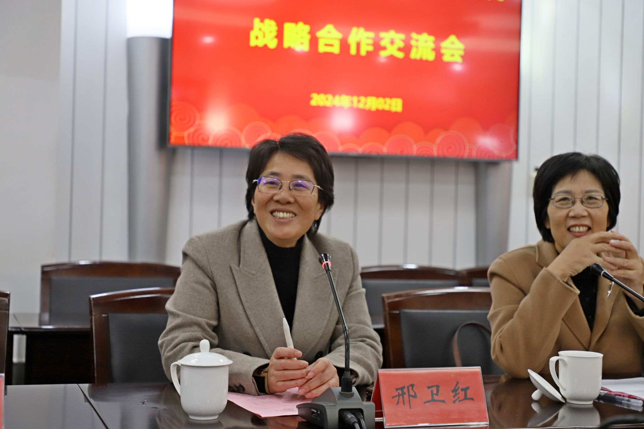 Xing Weihong delivered a welcome speech on behalf of Jiangsu University, expressing her appreciation for Wu Chao and his delegation's visit to Jiangsu University and their efforts to foster comprehensive strategic cooperation. She highlighted that the Hangzhou Water Treatment Technology Development Center is a leading institution in the domestic membrane-based water treatment technology sector and serves as the host organization for the National Liquid Separation Membrane Engineering Technology Research Center. Since the "11th Five-Year Plan," Jiangsu University and the Hangzhou Water Treatment Technology Development Center have maintained a close cooperative relationship, jointly undertaking numerous key national R&D projects. Their collaborative research has made significant advancements in areas such as seawater desalination high-pressure pumps, high-pressure booster pumps, and energy recovery devices, with multiple achievements receiving provincial and ministerial awards. She expressed her hope to expand this collaboration into interdisciplinary fields such as chemical engineering, environmental science, and fluid dynamics.